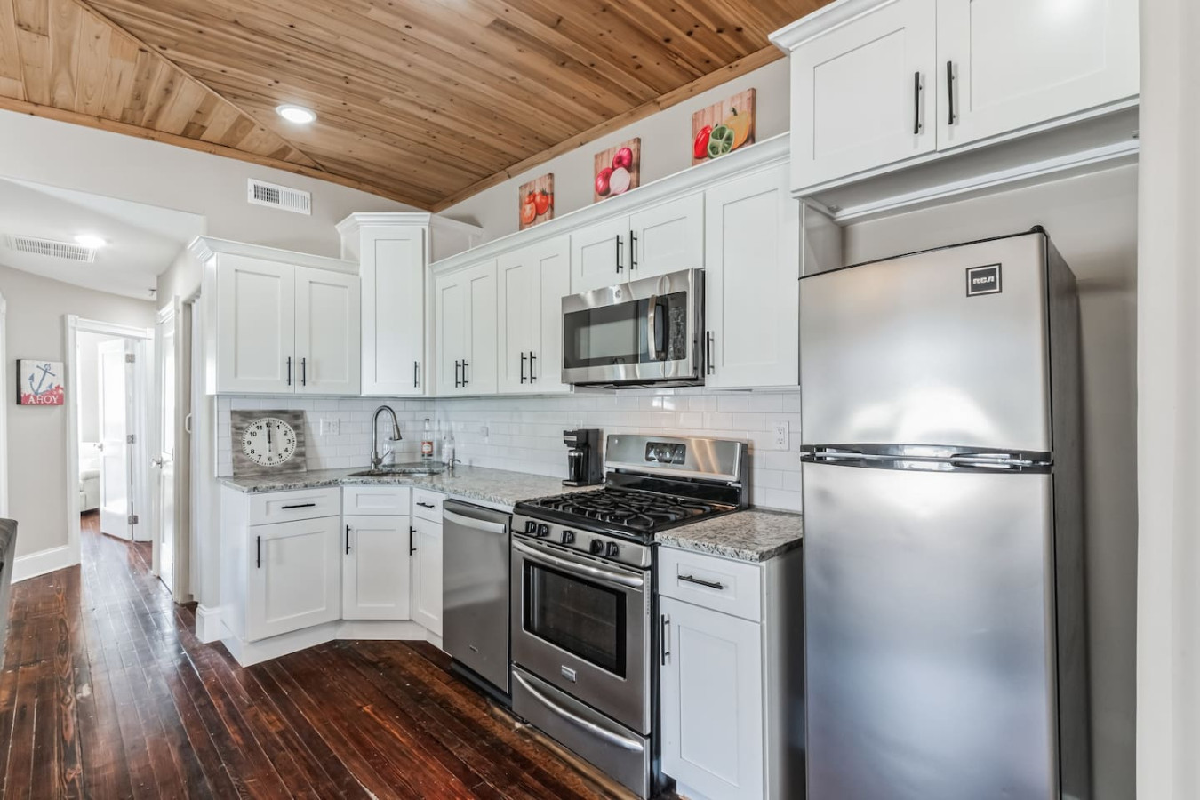 • Beautifully updated kitchen appliances with everything you need! ( Plates, Cups, Coffee, spatula, cutting board)