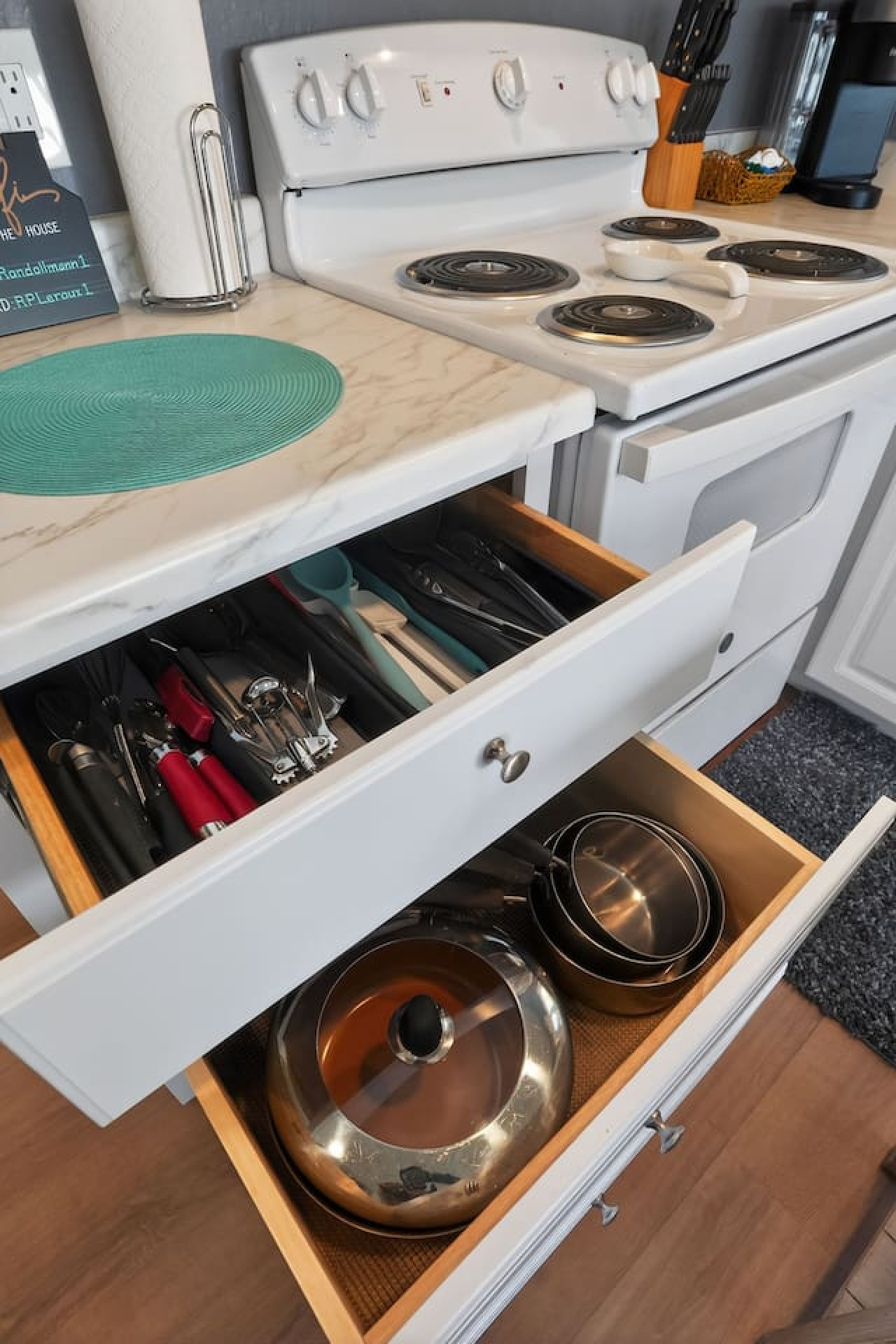 - Cookware, dinnerware, and utensils