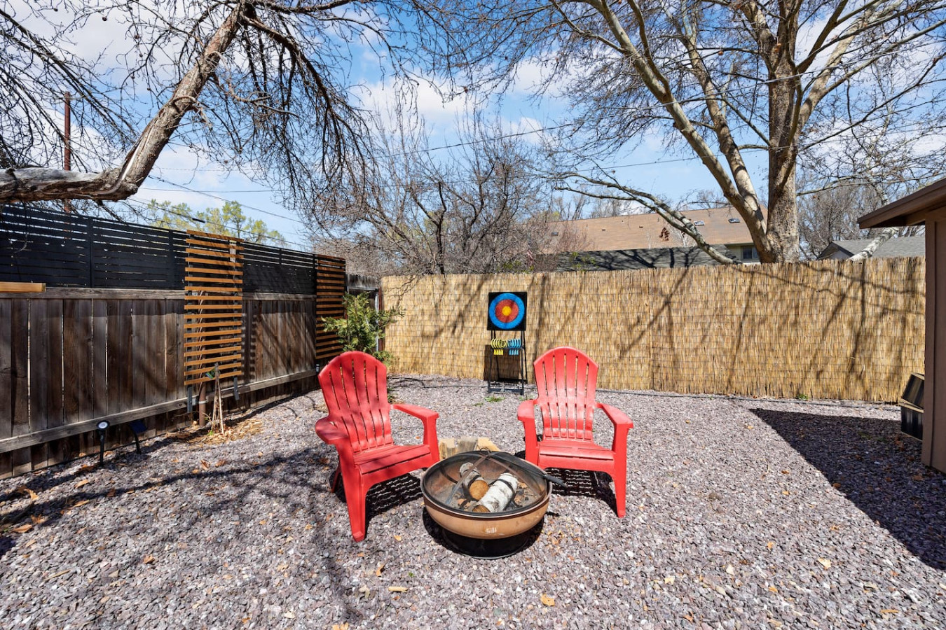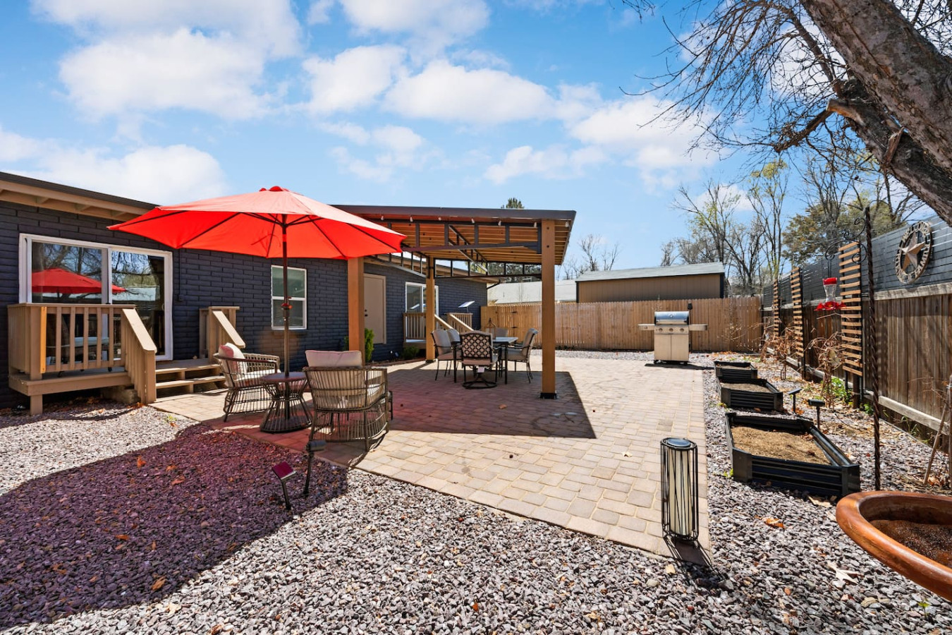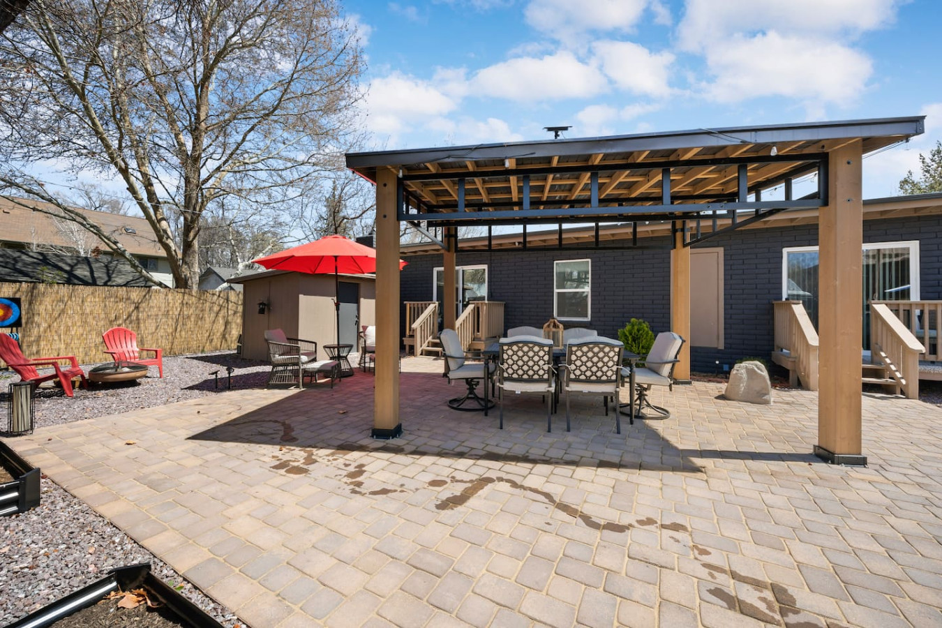 Step outside to your private backyard oasis, complete with a beautiful fire pit and a spacious outdoor seating area with a complimentary grill—perfect for evening gatherings, stargazing, or roasting marshmallows. (Guest provide their own fire supplies, we provide the propane for the grill)