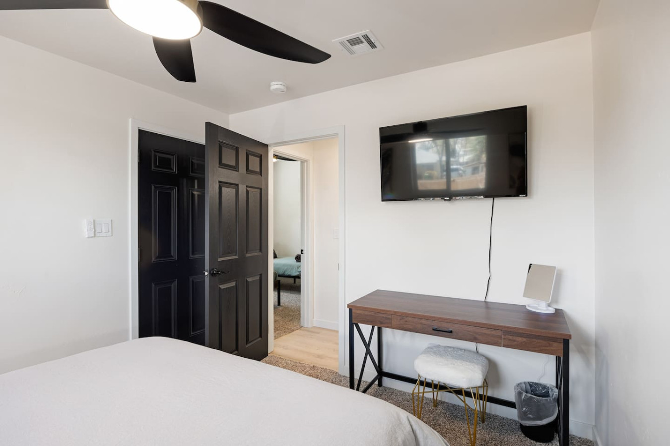 We had a fantastic stay — a perfect start to our road trip through the Southwest! The location is great: a safe, quiet neighborhood with good coffee just around the corner at Black Gold, and downtown Prescott (including Whiskey Row) is just a short drive or even a walk away. The house itself was spotless and beautifully designed. The layout worked perfectly for us, especially the spacious master bedroom and elegant bathroom. The kitchen area was generous and well-equipped — we really enjoyed cooking and having breakfast at the counter. The outdoor space was another highlight: plenty of room, comfy seating, and outdoor games made it a great spot to relax in the mornings and evenings. Communication with the host was smooth and easy. Check-in was simple, and responses were quick whenever we had a question. Parking on the property was convenient. Overall, excellent value for money. We’ll absolutely stay here again next time we’re in Prescott!- Sandra M , Posted: 7/23/2025