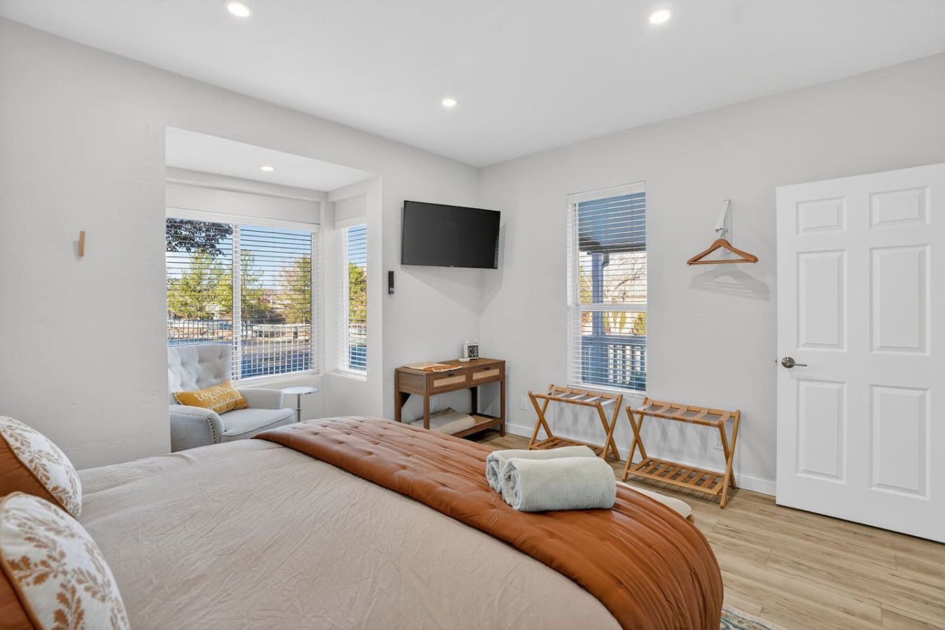 - New smart TVs throughout (no cable, but log in to your favorite apps!)