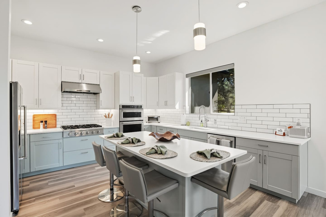 Chef’s Kitchen & Dining: Channel your inner chef in the fully-equipped gourmet kitchen – complete with high-end stainless appliances, a gas range, quartz countertops, and an island for buffet-style feasts. We’ve stocked it with everything you need for 10 guests, plus a coffee bar (drip coffee maker, Nespresso machine, grinder) to start your mornings right. Enjoy meals at the large indoor dining table or outside on the covered deck surrounded by nature.