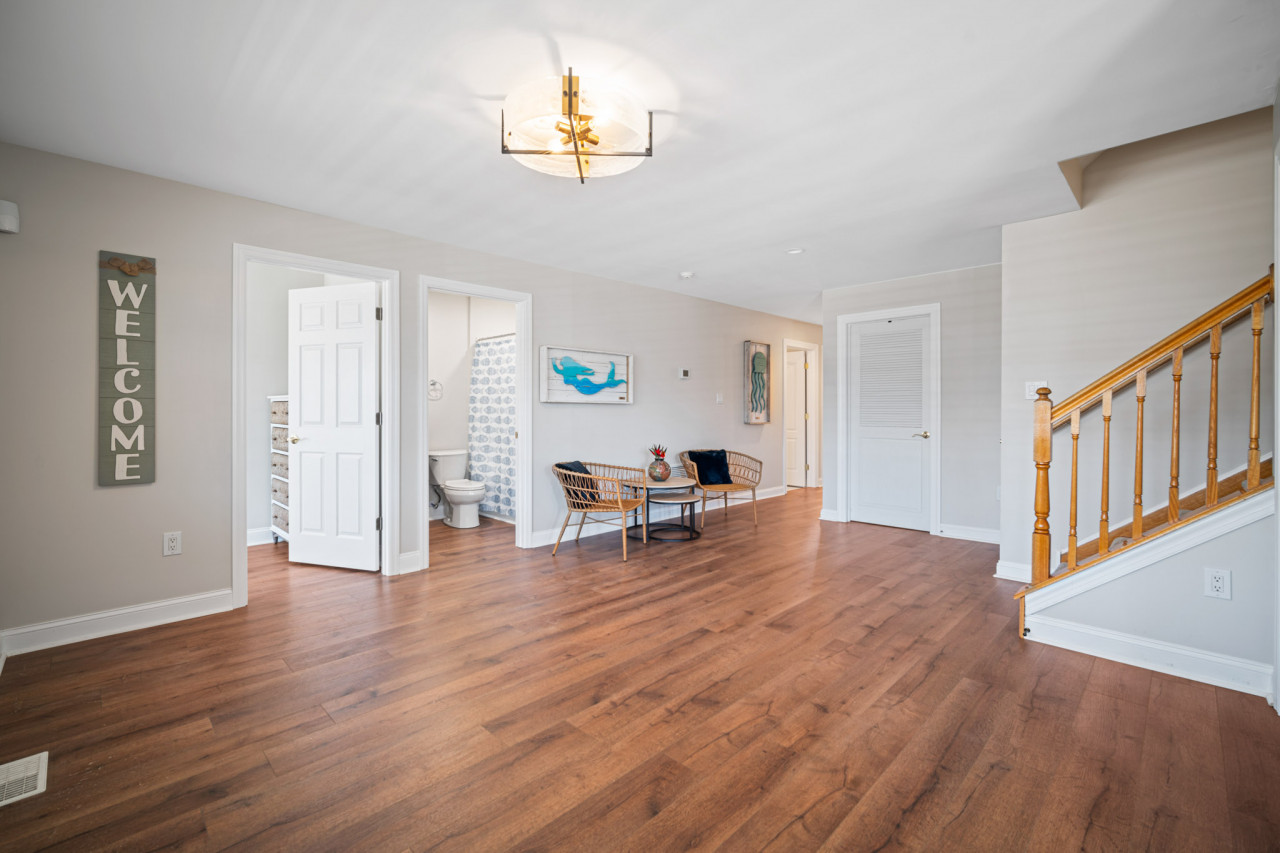 This home was spacious beyond belief. My team was in town for a conference at the Convention center and there were 7 of us in 6 of the 9 bedrooms. On the first floor there were 4 bedrooms, one was en suite and the other three shared 2 full bathrooms. On the second floor was the massive main living space, a half bath and a king sized en suite. There was a large, well stocked kitchen, large dining table that sat 10 people, and a breakfast nook. There was also a huge “family room “ space with reclining sofas for 8 and additional chairs. A fun place to hang and watch TV or talk that was far from the bedrooms so not to disturb people. On the third floor were 4 more bedrooms and two large bathrooms, and a sitting area. With bedrooms and shared living spaces on each floor and you could really have your own space while living with so many other people. We were together yet very much private. Tons of parking and Wawa within feet. Clean, light filled. Truly the best in the AC area.- Laura K , Posted: 3/14/2025